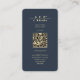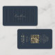 Elegant Modern Monogram Logging Operator Dark Blue Gold business card with QR code