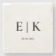 Elegant Monogram Wedding Stone Coaster | Modern Simple Black and White Favour