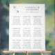 Wedding seating chart sign featuring modern minimalist typography in black and white colour.