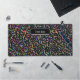 Elegant modern multicolor gem pattern on black Desk Mat. Text ready to be personalised.
