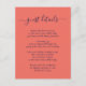 Provide your guests with important details with this elegant navy blue and coral wedding enclosure card featuring a modern script font. Matching items available.