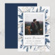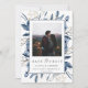 Elegant Modern Navy Blue Botanical Photo Wedding Save The Date
