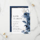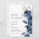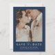 Elegant Modern Navy Blue Floral & Photo Wedding Save The Date