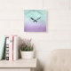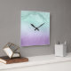 Elegant modern ombre purple & mint glitter marble square wall clock