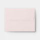 Custom pale pink coloured wedding RSVP envelopes feature a modern and elegant custom soft black response address that can be personalised on the front.