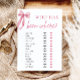 Embark on a journey of shared experiences with our Pink Bow She's Tying the Knot Bridal Shower Who Has Been Where Game. Guests will share tales of their adventures and travels, guessing who has visited various destinations, sparking laughter and lively conversation. With its charming pink bow design, this game adds a whimsical touch to your celebration while creating memorable moments for the bride and her guests. Let the stories unfold as everyone connects through their wanderlust and adventures!