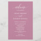 This elegant wedding program has an attractive pink background and text in white in a beautiful combination of block typography and modern handwritten calligraphy. Ability to make text changes and adjustments by selecting customise further. Front with wedding ceremony details, back with wedding party names and thank you message for your guests or any other text you like, ours is simply an example. Elegant, simple, and graceful feel. Part of our "Mauve Pink Watercolor Botanical Monogram Wedding" Collection with a variety of coordinating products available, including menu, table seating chart cards, table numbers, and more. Visit the entire collection with this link: https://www.zazzle.com/collections/mauve_pink_watercolor_elegant_monogram_wedding-119235672549123464