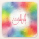 Elegant Modern Rainbow Abstract Monogram Template Colourful Add Your Text Yellow Orange Blue Green Pink Red Purple Square Paper Coaster.