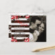 Elegant Modern Red Floral & Black & White Stripes Announcement Postcard