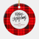 Elegant Modern Red Plaid Christmas Family Photo Ceramic Ornament