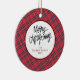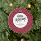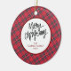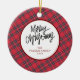 Elegant Modern Red Plaid Christmas Family Photo Ceramic Ornament