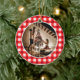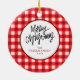 Elegant Modern Red Plaid Christmas Family Photo Ceramic Ornament