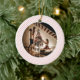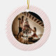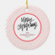Elegant Modern Red Stripes Christmas Family Photo Ceramic Ornament