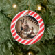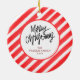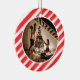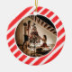 Elegant Modern Red Stripes Christmas Family Photo Ceramic Ornament