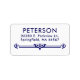 Elegant modern navy blue on white return address labels featuring a classic sans serif font for a minimalist feel above a clean lined scroll.