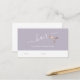 Modern and elegant design for hairstylists with faux rose gold scissors, elegant calligraphy font and purple background.