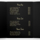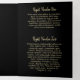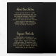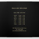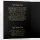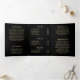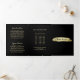 Modern trifold brochure featuring an abstract gold paint stroke and your name in an elegant brush script over a black background. The back panel has your hours of operation and contact information. The inner fold panel has two headers and text boxes. The inside has multiple templates for information about your business on the outer panels and a price list in the middle panel. Both sides have folding guides which may be removed by clicking the "customise" button. A simple trifold brochure with a feminine touch, perfect for a woman owned nail salon, beauty salon or hair stylist.