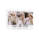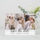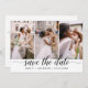 Modern and Elegant Landscape Horizontal Three (3) Photo Save the Date Wedding Magnet with hand lettered script typography. The save the date invitation magnet includes script typography and chic and simple design that you can add your customised engagement photograph picture to.