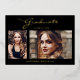 This real foil, modern and elegant 2 photo graduation announcement card, features design elements of modern text fused with elegant calligraphy script. The graduates photos are displayed on the front of the card while the back of the card offers personalised text spaces for information about the graduation and future journey. Backgrounds are white on the front and silver grey on the back or easily customise these to colours of your choice. To see more items like this, visit my store here at "www.Zazzle.com/LakeViewCardCo". Thanks