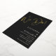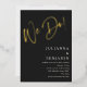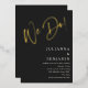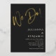 This wedding invitation features a big gold foil "We Do!" in handwritten script at the top on a black background, with the couple's names, date, venue, and wedding details in white below. A great fit for a couple who wants something bold, glamorous, and modern.