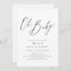Modern "oh baby" script minimalist design in charcoal black and white, simple and elegant. Great minimal baby shower invitations