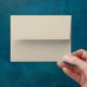 Modern script minimalist design on tan background, simple and elegant. Great RSVP envelope for modern wedding and other events.