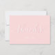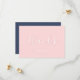 These elegant navy & blush wedding thank you cards feature the message "thanks" in a modern script hand lettering font in white letters with blush pink shadow. Underneath is the couples' names in white in a capitalised coordinating font. The background of the front is light blush pink. The back of the card features a coordinating dark blue navy background. Complete the package with invitations, save the dates, and envelopes in the "Navy & Blush Elegant Script Wedding" collection.