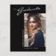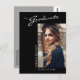 This modern elegant graduation announcement postcard, features design elements of modern text fused with elegant calligraphy script. The graduates horizontal photo is artfully placed on the front of the card while the back of the card offers personalised text spaces for information about the graduation and future journey. Backgrounds are black on the front and silver grey on the back or easily customise them to colours of your choice. To see more items like this, visit my store here at "www.Zazzle.com/LakeViewCardCo". Thanks
