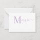 Elegant Modern Script Purple Monogram Name Note Ca Card