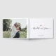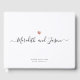 This elegant black and white wedding guest book showcases your names in trendy script calligraphy with your wedding date below and a printed rose golden heart above. Easily customise the spine and replace the back with your own favourite photo moment. This sophisticated memento will be cherished for years to come.