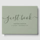 Minimalist, yet elegant sage green wedding guest book with a modern script font. Matching items available.