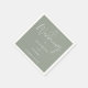 This elegant sage green wedding napkin can be personalised with your information in chic typography. Designed by Thisisnotme©