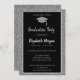 Elegant Modern Silver Glitter Graduation Cap Invitation