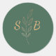 Elegant Modern Simple Monogram Green Wedding Classic Round Sticker