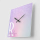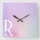 Elegant modern stylish girly ombre purple glitter square wall clock