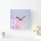 Elegant modern stylish ombre blue glitter rainbow square wall clock