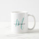 Elegant Modern Teal Script Monogram Coffee Mug. An elegant teal script monogram combined with a clean black san-serif font makes for a contemporary look.