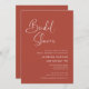 A modern typography and a trendy terracotta, clay and peach colour palette for your Bridal shower stationery: choose this simple and elegant wedding suite. Fully customisable: you can change the background as well as the text colour as you like.