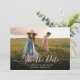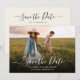 Modern elegant calligraphy script overlay one photo wedding save the date announcement card. Chic minimalist design template feature 1 photo and elegant cursive hand lettering typography script „Save the Date” text overlay. At tha backing your save the date pre-made message. If you need help or matching items, please contact me.