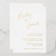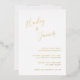Modern Wedding Invitation featuring a simple design with your names in an elegant handwritten script at the top left and your event details in right alignment at the bottom right. All text is in real gold foil. The chic hand lettering adds a romantic touch to this minimalist design.