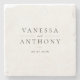 Modern wedding stone coasters featuring elegant typography and minimalist graphic design.