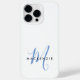 Elegant Modern White Blue Script Monogram Case-Mate iPhone Case