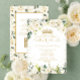 Elegant Modern White Gold Floral QR Quinceañera Invitation