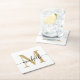 Elegant Modern White Gold Monogram Name Script Square Paper Coaster