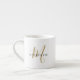 Elegant Modern White Gold Script Monogram Espresso Cup. An elegant gold script monogram combined with a clean black san-serif font makes for a contemporary look.