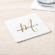 Elegant Modern White Gold Script Monogram Square Paper Coaster