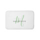 Elegant Modern White Green Script Monogram Bath Mat. An elegant green script monogram combined with a clean black san-serif font makes for a contemporary look.