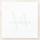 Elegant Modern White Green Script Monogram Glass Coaster. An elegant green script monogram combined with a clean black san-serif font makes for a contemporary look.