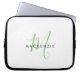 Elegant Modern White Green Script Monogram Laptop Sleeve