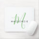 Elegant Modern White Green Script Monogram Mouse Pad. An elegant green script monogram combined with a clean black san-serif font makes for a contemporary look.